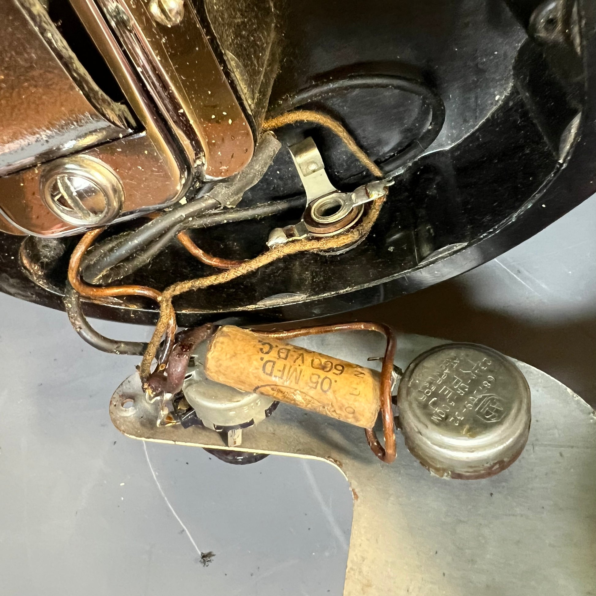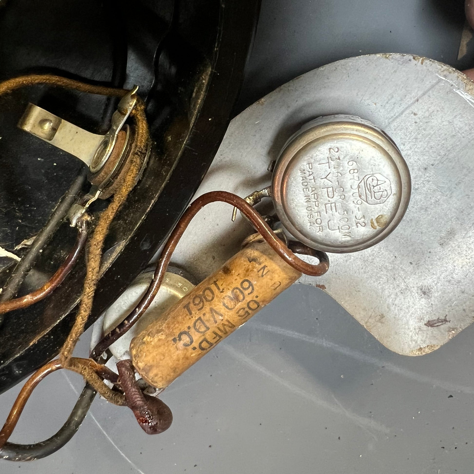 This example is in nice shape and remains in original condition. It has a few light marks here and there from normal use and some pitting on the pickup magnets. The tuners work well. One is an era replacement and blends nicely. The 1 1/4 Horseshoe pickup is strong and sounds wonderful. Comes with an original era Ric. chipboard case that needs a handle. The electronics appear original. It's a tone machine!