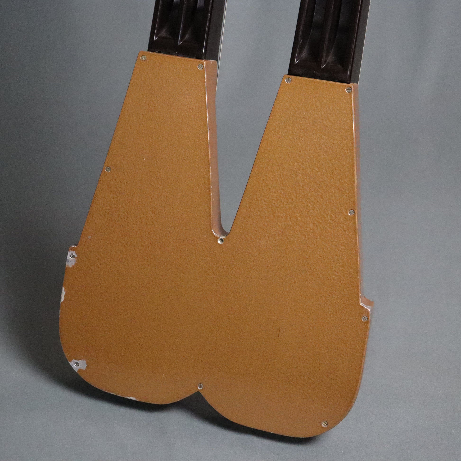 This lovely example is a late 1940s model with a unique set of features. It sports the Rickenbacher T-style logo on the headstocks. One T has a slightly more yellow tint. Around this time, Rickenbacker changed spellings from the original Rickenbacher, and this model would have been one of the last before that change. The post war 1 1/4 Horseshoe pickups are strong and sound wonderful. It also features a patented tailpiece for easy string swapping.